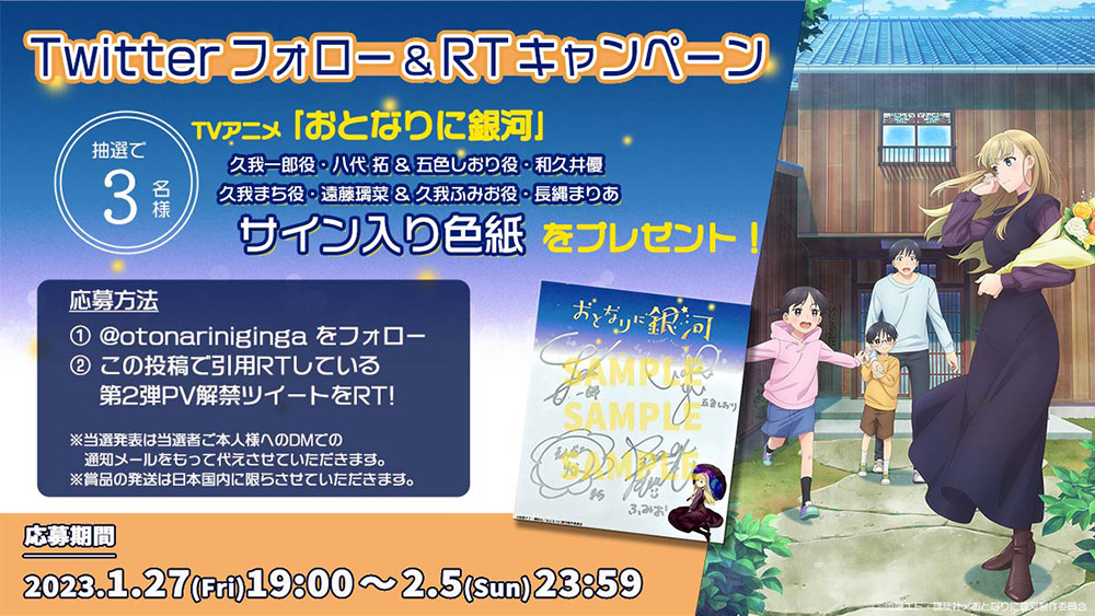 「おとなりに銀河」のアニメ化を記念してTwitter公式アカウント(@otonariniginga)にてフォロー&RTキャンペーンを開催中!